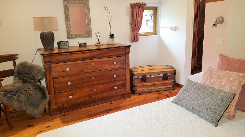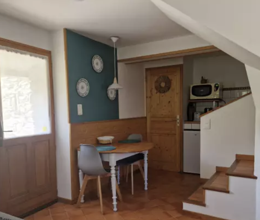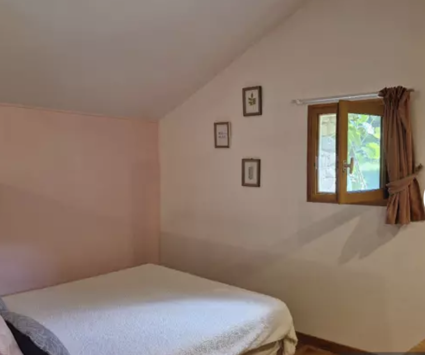 Casa rural de 40 m², ideal para parejas y senderistas, que dispone en la planta baja de salón, zona de comedor y cocina, y en la primera planta de dormitorio y cuarto de baño con ducha.
