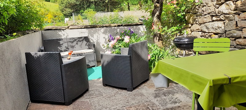 Terraza privada de unos 20 m² con muebles de jardín y barbacoa.
