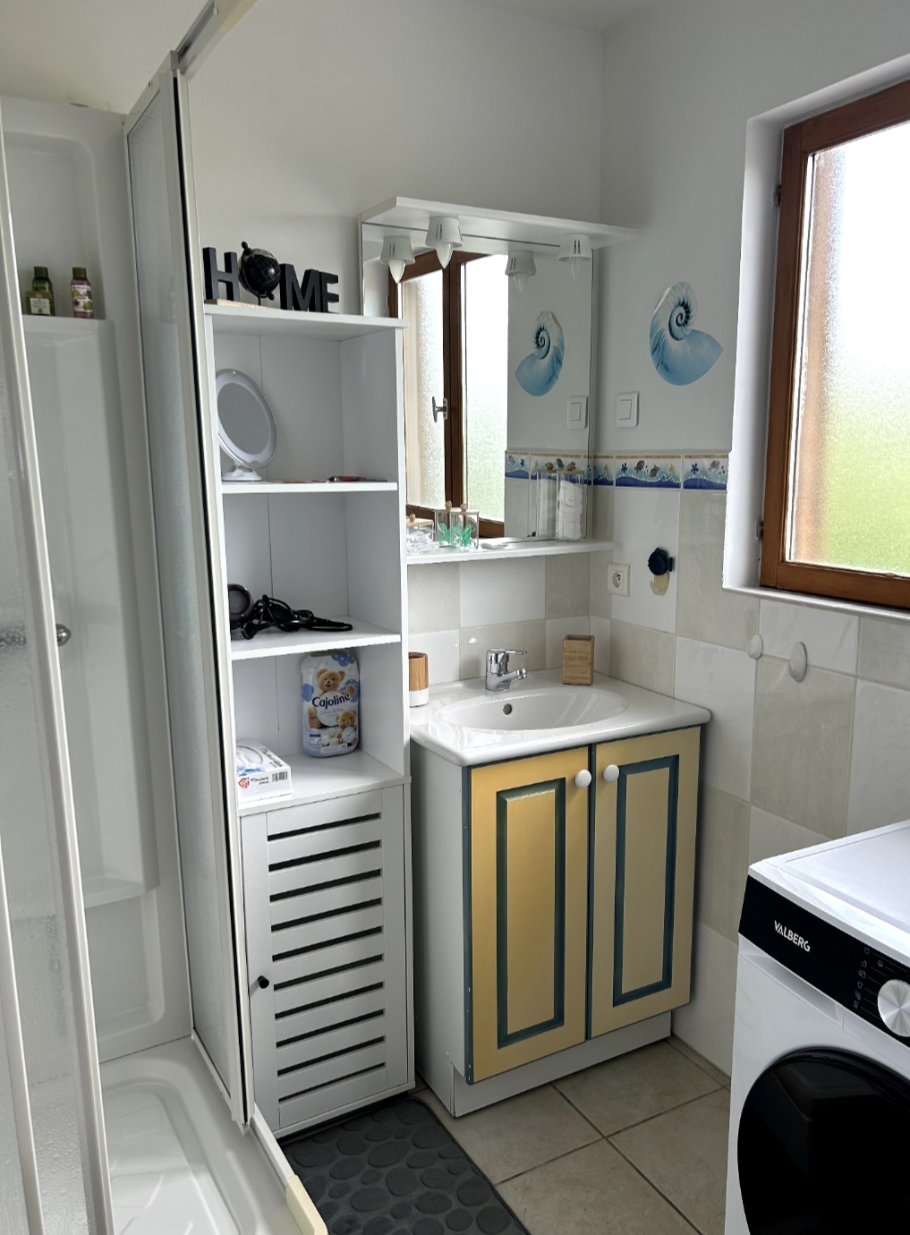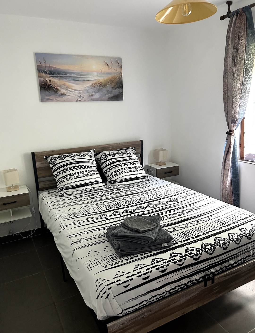 Nuestro chalet independiente (aprox. 40 m²) ofrece comodidad para hasta 4 personas: 2 dormitorios con cama doble (140x190), sala de estar con cocina equipada, baño con ducha, WC separado y zona exterior reservada para los viajeros.