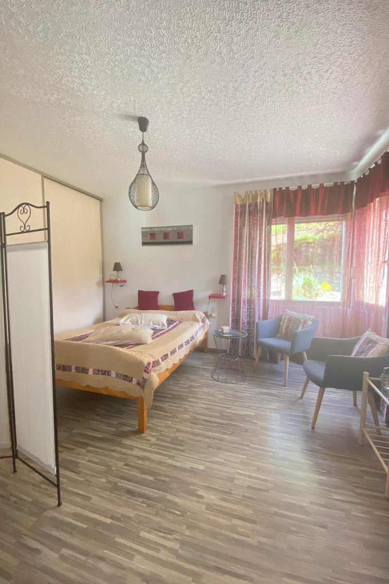 Chambre d’hôtes dans les monts de Lacaune, accès terrasse, espace vert.