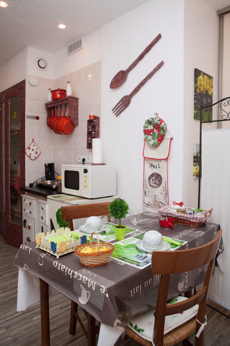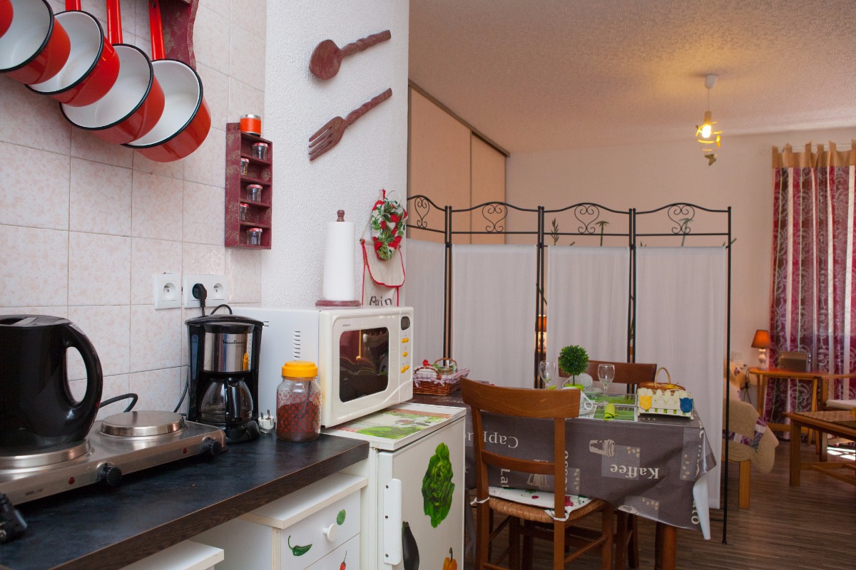 1 lit en 140, TV, salle de bains, WC, coin cuisine (MO). Wifi. Chauffage fuel. Parking privé.