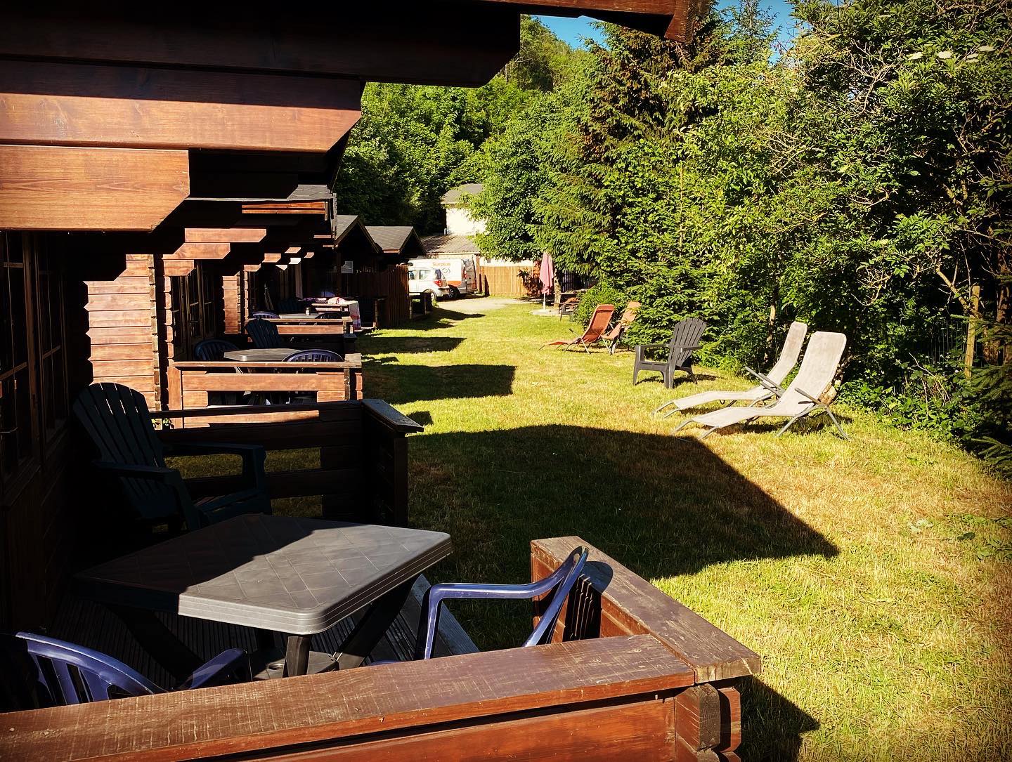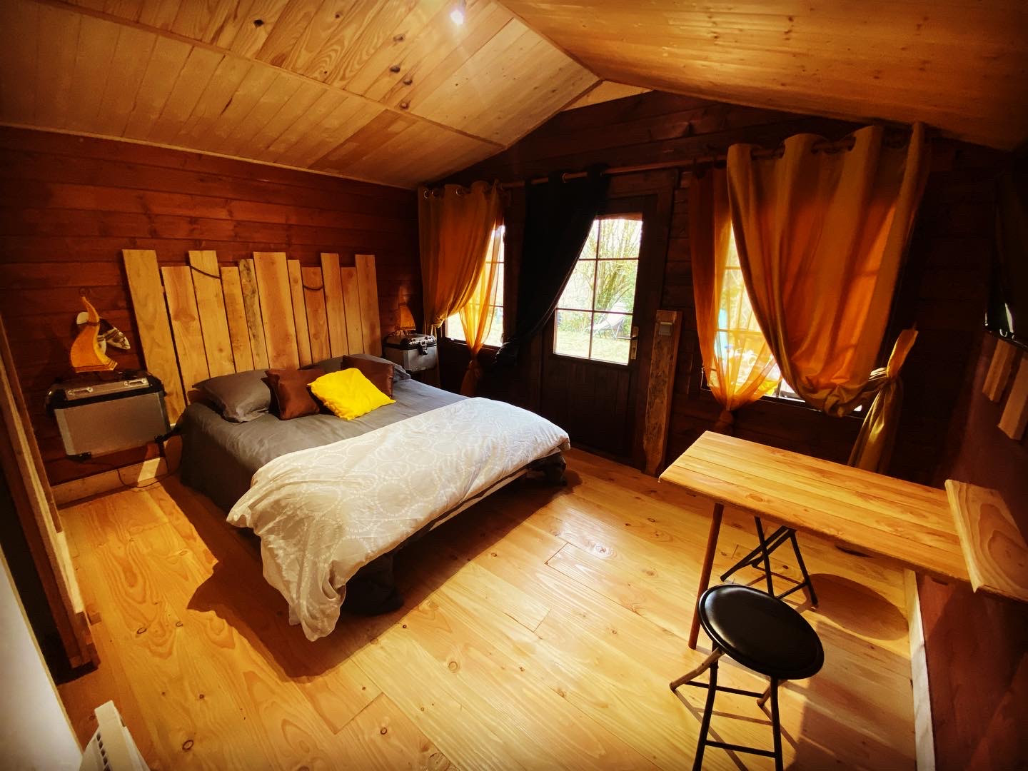 - Les chalets nature avec un lit double, réfrigérateur, téléviseur, micro-ondes, salle d’eau privative et terrasse.