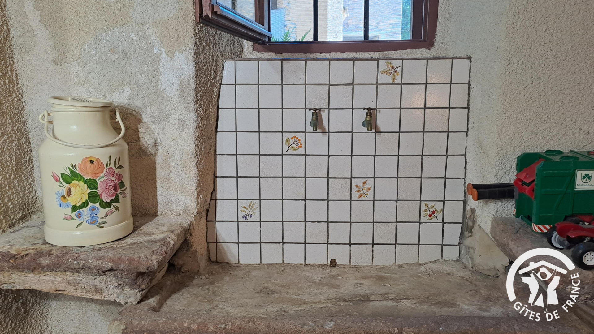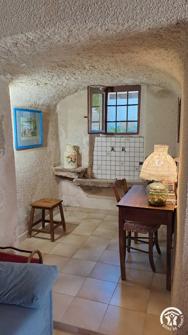 - Rez-de-chaussée : pièce à vivre avec salle à manger, coin salon et petite cuisine aménagée dans l'ancienne souillarde, un petit coin lecture avec mise à disposition de jeux de sociétés de l'époque, wc indépendant. Equipement de la cuisine : grille-pain, batteur, mixeur plongeant, gazinière avec four, micro-ondes, frigo et cafetière à filtre.