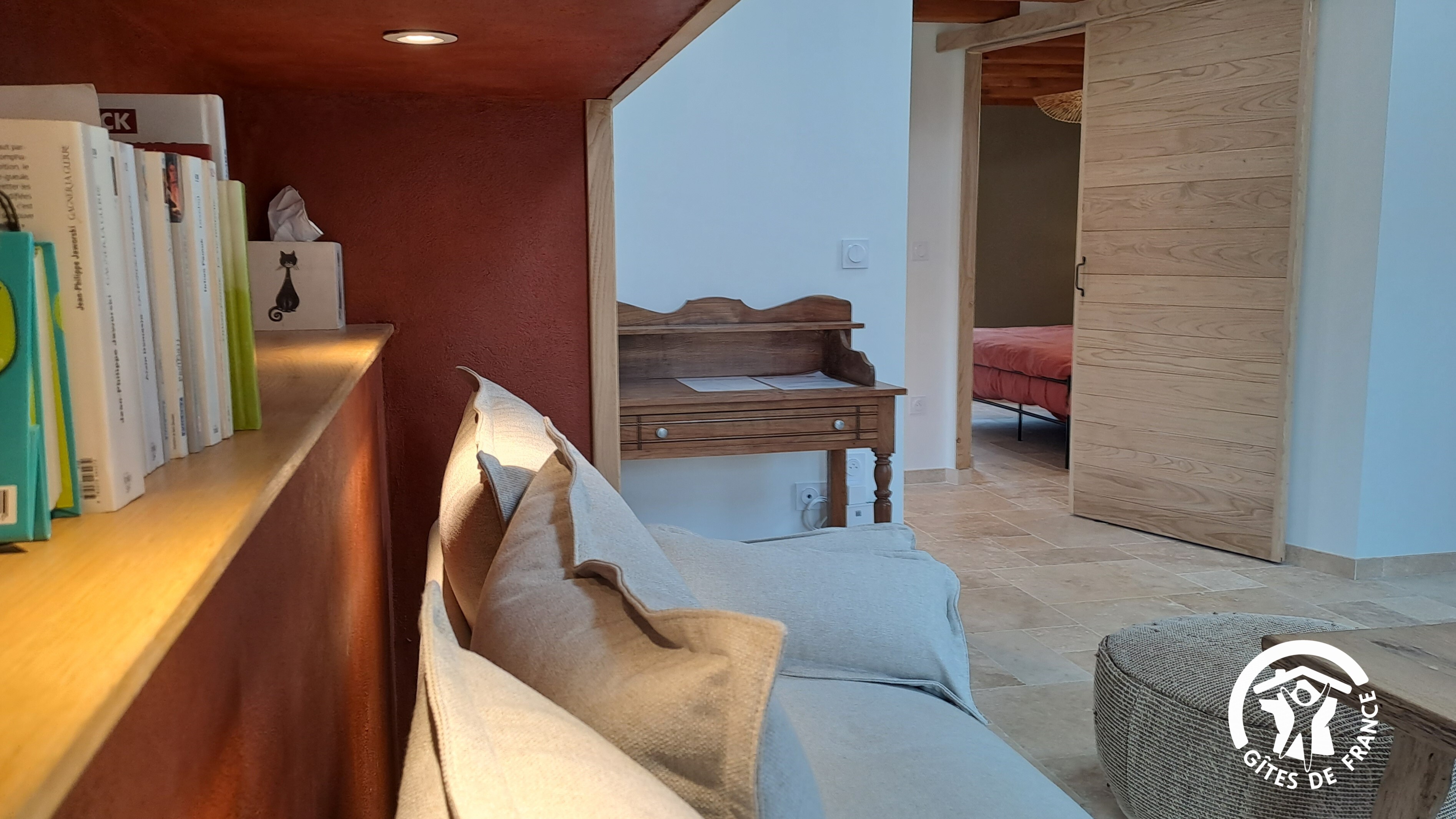 - Mezzanine avec coin bureau et canapé convertible pour 2 couchages supplémentaires si besoin