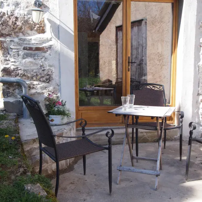 Maison indépendante, à proximité de l'habitation des propriétaires (en contre-bas du gîte), avec terrasse privative. L'accessibilité a été pensée avec une absence de marche ou de relief sur l'ensemble du rez-de-chaussée y compris pour l'accès à la douche. Bien que la maison soit équipée d'un chauffage au sol grâce à une pompe à chaleur, vous pourrez également profiter de la chaleur du poêle à bois.